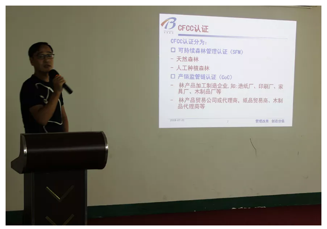 伽立實(shí)業(yè)集團(tuán)邀請(qǐng)來自專業(yè)機(jī)構(gòu)的培訓(xùn)講師,任職PEFC和CFCC認(rèn)證相關(guān)崗位長達(dá)數(shù)十年經(jīng)驗(yàn),對(duì)營銷中心及相關(guān)部門進(jìn)行PEFC和CFCC認(rèn)證培訓(xùn)指導(dǎo)。