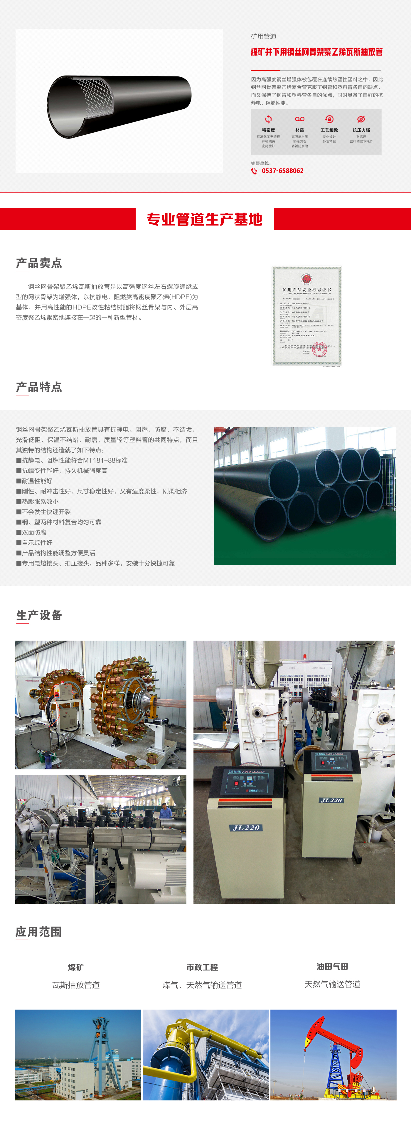 煤礦井下用鋼絲網(wǎng)骨架聚乙烯瓦斯抽放管